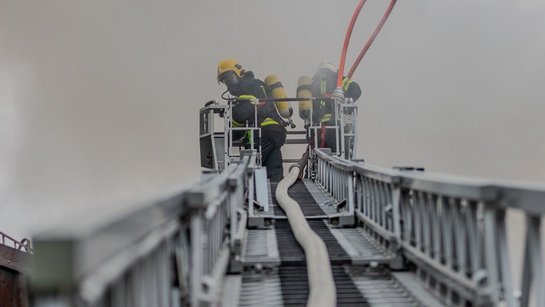 Wir stellten eine Zubringerleitung aus der Ager her und stellten einen Atemschutztrupp.